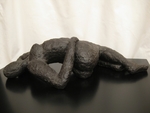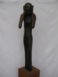 2013Het bekendste schilderij van Edvard Munch De Schreeuw leverde de inspiratie. Hij heeft in totaal vier versies gemaakt. Dit beeld kan buiten staan. Verbronsd keramiek, sokkel is van hout met een laag cortenstaal (80 x 17 x 17). Totale hoogte 180. Ik heb ook een kleiner exemplaar gemaakt. De Schreeuw 1 is van brons.